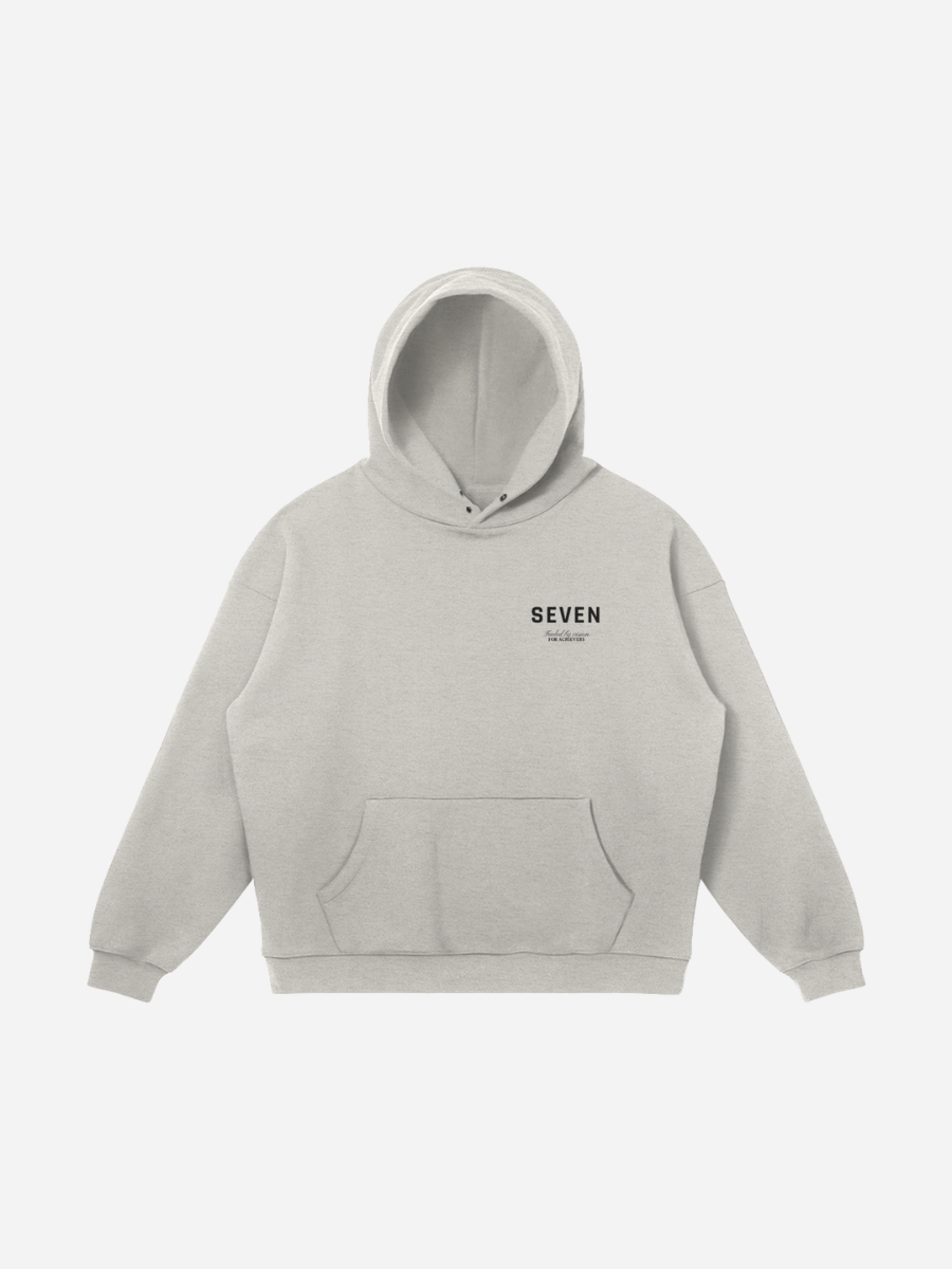 Introducing SEVEN BOLD SOCIETY HOODIE - HEATHER GREY Crafted from soft 380GSM combed cotton, this oversized hoodie blends warmth with style. The fleece lining and snap button collar provide extra protection, making it perfect for cooler days.